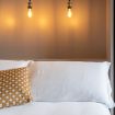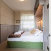 Comfortevole camera di circa 30mq con affaccio sul giardino e piccolo balcone privato, caratterizzata da colori tenui e stoffe ricercate al fine di congiungere antico e moderno.